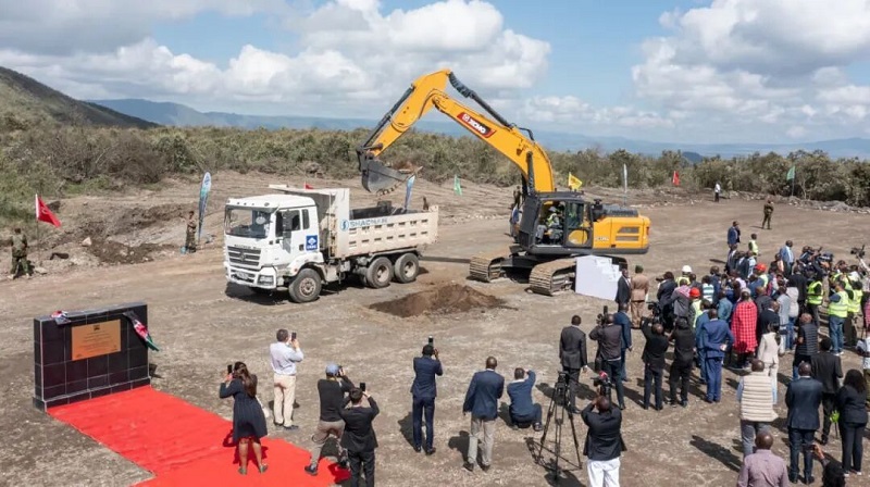 上午九點,肯尼亞共和國總統魯托閣下搭乘的直升飛機降落在綠色化肥廠建設工地,他與開山控股集團股份有限公司董事長曹克堅首先為項目揭牌,并親自開動挖掘機,為項目建設挖掘了第一鏟土,宣告了肯尼亞有史以來最大的工業項目開工建設。