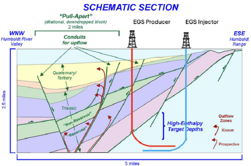 根據(jù)美國《GRC學(xué)報》2011年第35卷《內(nèi)華達州Pershing縣Humboldt House地?zé)豳Y源區(qū)概念模型重述》專著的預(yù)測,該區(qū)塊具有200-500兆瓦的增強型地?zé)嵯到y(tǒng)資源,而該區(qū)塊大部分資源區(qū)由OME擁有,并且已經(jīng)建設(shè)、運營了Star Peak地?zé)岚l(fā)電站。PP與OME的合作將發(fā)揮各自優(yōu)勢,開發(fā)該地?zé)釁^(qū)塊的增強型地?zé)豳Y源,據(jù)介紹,OME除了擁有資源區(qū)開發(fā)權(quán),還可以為EGS開發(fā)提供電力、Star Peak電站發(fā)電尾水、電網(wǎng)容量和發(fā)電設(shè)備;PP團隊則擁有完整的開發(fā)團隊,CEO Mr.Keith Elliott在美國最大的私營油氣公司擔(dān)任儲層工程和領(lǐng)導(dǎo)職務(wù)超過20年,團隊成員包括在頁巖區(qū)成功鉆井?dāng)?shù)百口的鉆井與開發(fā)專家,包括地質(zhì)科學(xué)與地?zé)峁こ填I(lǐng)域的資深專家,也包括曾經(jīng)就職于美國能源部負責(zé)關(guān)鍵能源戰(zhàn)略的融資專家。